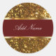 Des autocollants de monogramme brillants avec motif de parties scintillant en or simulé et stylisé imprimé sur l'emblème de monogramme couleur étiquette et marron que vous pouvez personnaliser avec n'importe quel nom, initiales ou message personnel. Meilleurs étiquettes monogrammes pour remercier, fêtes, étiquettes cadeaux, ou étiquettes de nom.