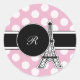 Des autocollants ronds en monogramme rose avec des pois et la Tour Eiffel vous donnent un aperçu de la France. Ajoutez votre nom ou vos initiales Cet autocollant chic et élégant fait partie de la collection Pink Paris.
