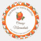 Un autocollant sur mesure avec de l'art vintage de caisses d'oranges avec de petites fleurs sur l'arrière - plan et le étiquette, avec des rétro brun et des lettres de script pour votre recette artisanale, votre nom ou entreprise, et plus d'infos.