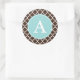 Un motif marron chocolat foncé et un accent aqua donnent à ces autocollants monogrammes un style rétro. Personnalisez le texte en fonction de vos besoins. Utilisez ces autocollants dans la cuisine, pour la boulangerie, l'école, les affaires, le bureau, l'artisanat, les cadeaux, les sacs-cadeaux, un mariage, le baby shower, etc...Le design est de l'art original.