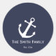 Cet autocollant à jetons bleus de minuit a une ancre blanche. Personnalisez cet autocollant avec votre texte.