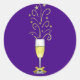 Grand autocollants d'enveloppe de la fête de la Saint-Sylvestre de couleur violette, avec des graphiques d'une vitre de champagne remplie, décoré d'un joli arc de ton or, sur la tige, et des flots de mousseux tirant sur la vitre. Une façon élégante de terminer vos invitations de fête de vacances.