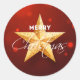 L'autocollant Christmas Holiday est montré dans une affiche d'étoile d'or festive avec salutation. Un autocollant de petite taille est affiché.