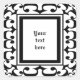 Ces élégants autocollants décoratifs en noir et blanc présentent un motif abstrait orné entourant des carrés centraux. Ajoutez votre propre texte ou supprimez ce qu'il y a. Modifiez la couleur de l'arrière - plan en cliquant sur Customiser, puis sur Modifier, puis sur Arrière - plan.