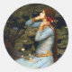 stickers John William Waterhouse Ophelia. Peinture à l'huile sur toile de 1894. L'artiste anglais John Waterhouse s'est souvent appuyé sur des thèmes littéraires, et Shakespeare a été l'une de ses plus grandes sources d'inspiration. Waterhouse a dédié de multiples peintures à l'héroïne condamnée de Hamlet, Ophelia. Cette peinture précoce présente la fille en robe bleu clair avec broderie en or et bracelets bijoux. Les cheveux d’Ophelia sont auburn et ornés de fleurs rouges foncées. Elle est assise au bord d'un étang rempli de nénuphars avec des marguerites dans ses genoux. Un grand cadeau pour les fans de J.W. Waterhouse, Shakespeare, Ophelia, les Pré-Raphaélites, et la peinture romantique anglaise.