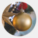 Élégants autocollants de Noël avec un ornement d'or brillant accroché à l'arbre. Customisez avec votre propre texte si vous le souhaitez!