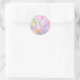 Autocollant de forme arrondie affiché dans une jolie impression de papillons couleur lavande. Customisez cet objet ou achetez tel quel.