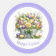 L'autocollant de Pâques est montré avec un joli imprimé de panier fleuri. Color Lavender Personnaliser ou acheter tel quel.