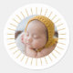 Mettant en valeur votre petit lot de joie, notre Sticker Sunshine Baby Photo Circle ajoute une touche de charme à vos annonces ou cartes de remerciements. Doté d'un design ensoleillé avec un modèle photo circulaire au centre, cet autocollant est parfait pour présenter l'adorable visage de votre bébé. Utilisez-le comme sceau d'enveloppe ou pour ajouter une touche personnelle à divers articles de papeterie pour bébés. Capturez l'essence de la douceur de votre nouveau-né et partagez-la avec vos amis et votre famille avec cet autocollant délicieux. Qu'il s'agisse d'annoncer leur arrivée ou d'exprimer leur gratitude pour les cadeaux, cet autocollant est un joli ajout à toute correspondance liée au bébé.