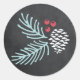 Ce petit autocollant rond présente un graphisme de pin, de baies et de pinecone sur un arrière - plan de tableau noir. Fabrique un autocollant de fermeture ou un sceau pour habiller vos enveloppes cette saison des Fêtes.