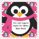stickers Pingouin rose, facile d'ajouter un nom ou un autre texte avant de commander, idéal pour orner vos enveloppes pour fêtes de vacances, fêtes d'anniversaire et patins !