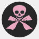Symbole classique du crâne et des os croisés du drapeau de pirate, le Jolly roger, mais avec une touche nettement féminine. Les os croisés sont remplacés par un gros arc rose ! En rose vif sur n'importe quelle couleur arrière - plan vous choisissez!