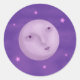 Une lune de lavande entourée d'une étoile scintillante sur un arrière - plan mauve onirique.