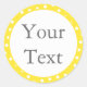 Ces étiquettes autocollants personnalisés présentent du texte gris sur un arrière - plan blanc avec une bordure pointillée jaune et blanc moderne. Vous pouvez utiliser ces autocollants personnalisés comme étiquettes cadeaux, étiquettes de mariage ou les customiser pour tout autre événement ou occasion. Le texte peut être customisé sur la page de commande de produit. Assurez-vous de consulter les enveloppes, cartes, produits fixes et autres produits jaunes canariens coordonnés sur mesure dans notre magasin.
