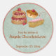 Trois délicieux desserts à l'aspect délicieux accentuent cet autocollant de recette personnalisable. Texte : "De la cuisine de :" Vous pouvez personnaliser le texte sur cet autocollant pour ajouter autant ou aussi peu d'informations que vous le souhaitez. Idéal autocollant lors de la livraison de pâtisseries comme cadeau. Nous avons aussi des cartes de recettes et classeur de recettes assorties!