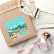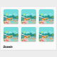 Ce Sticker Retro Gay Pool est doté de quatre beefcakes à l'ancienne, gays, qui battent la chaleur de Palm Springs en s'allongeant autour de l'eau turquoise de leur piscine en forme de boomerang atomique. L'architecture moderne du milieu du siècle sur la fabuleuse maison en pierre orange est clairement une propriété de premier choix, vu la vue sur les montagnes de l'arrière - plan. Un soleil d'étoile jaune brille dans le ciel turquoise pour que vous puissiez voir tous les détails charmants, depuis les flamants roses kitsch jusqu'à la clôture rayée des blocs bruns des années 50. Et bien sûr ce que Palm Springs House serait complet sans palmier ?