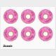 Des beignets roses avec des arrosées d'autocollants ronds. Ils sont assez bons pour manger. (: