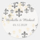 Ces autocollants ronds présentent un design tendance mais sophistiqué de symboles Fleur de Lis en cascade en gris et jaune. Parfait pour votre mariage de la Nouvelle-Orléans et enregistrez la correspondance de date et les projets.