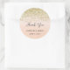 stickers Merci avec parties scintillant en faux or design et arrière - plan d'aquarelle à l'ombre.
