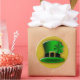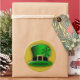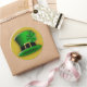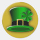 © Sunny Mars Designs. Stickers ronds personnalisés Casquette Leprechaun de St Patrick - Ces stickers adhésifs sont munis d’un casquette leprechaun vert avec une bande noire autour, une boucle en or et un shamrock attaché à lui.