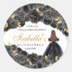 Stickers ronds Quinceanera Floral Noir et Or