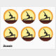 © Sunny Mars Designs - Yoga Sunrise Warrior Pose Silhouette Autocollants Rond Personnalisables - Cool, unique, dynamique, rouge et jaune personnalisé autocollants ronds avec la silhouette d'une femme pratiquant le yoga avec le lever du soleil dans l'arrière - plan. Concept de santé, de fitness, de paix et de tranquillité. Parfait pour le yogis, les moniteurs de yoga, les professeurs de yoga, les amateurs de yoga ou les étudiants de yoga.