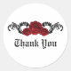 Stickers de Merci Rose gothique foncé et élégant, avec une floraison tourbillonnante et un trio de roses rouges profondes. Ces autocollants cool et uniques sont parfaits pour le couple qui planifie un mariage goth non traditionnel. Facile à customiser, ajoutez simplement le texte personnalisé de votre choix. Cliquez sur le bouton "Customiser" pour trouver d'autres options de personnalisation.