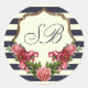 Roses élégantes, chic, et pays rouge et rose avec bandes bleu marine et ivoire blanc et faux imprimé or, autocollants monogramme. Ce design classique et sophistiqué est parfait pour une femme classe, branchée et élégante. Personnalisez avec vos propres initiales de monogramme customisées. Toute la conception d'impression photo.
