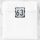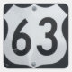 Photographie d'un panneau routier de la US Highway 63 imprimé sur le bord des autocollants.