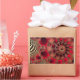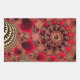 Un design fractal étincelant avec des spirales ornées de rouge foncé et vif, incrustées de filigrane doré comme des coquillages métalliques et cloutées de rubis scintillants.
