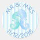 Seahorse Couple Blue Green Seahorses Kiss Mr et Mrs Mariage Date Stickers, mignon pour mariage à thème de plage ou baby shower tropical.