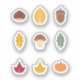 Une collection de 9 Stickers d'automne aux feuilles d'automne, un châtaignier, un glacier, un champignon et un citrouille pour les amateurs de nature et de forêt.