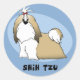 Mignons stickers Shih Tzu ! Un dessin de la race de chien jouet, avec un manteau d'or et blanc, est au centre avec un arrière - plan bleu clair. Animation adorable pour chien faite spécialement pour les propriétaires de Shih Tzu! Art original pour chien Copyright © Menagerie Mayhem.