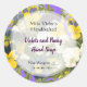 Des autocollants personnalisés à savon, à la cuisson ou à l'artisanat avec des caractères violets et des lettres noires bloquées sur de belles fleurs violettes et fleurs botaniques violettes, jaunes et bleues.