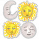 Stickers Soleil et Lune mignons. Illustrations D'Aquarelle Peinte À La Main. Soleil et clair de lune. Ensemble de 4 motifs. Amusants designs faits main. Décorations de l'artisanat, emballage cadeau, bricolage, autocollants de journalisation.