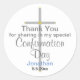 Élégant Merci Confirmation Son rond autocollants. Simple croix d'argent peinte à la main avec des accents d'or contre un arrière - plan blanc. Personnalisez avec le nom de votre enfant dans le texte bleu et la date dans le texte noir. Oeuvre et design graphiques d'origine © TamiraZDesigns.
