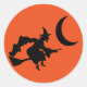 Autocollant rond avec une empreinte sorcière halloween. Customisez cet objet ou achetez tel quel. com.