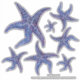 Feuille d'autocollants d'étoiles de mer (BLUE) © Mary E Smith Chaque autocollant est coupé en contour avec une petite bordure blanche