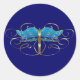 Le corps et les veines dans les ailes dentées de la libellule frappante sur cet autocollant sont en or métallique. Les ailes en mosaïque sont remplies d'un bleu turquoise brillant dans le haut des deux tiers se déplaçant graduellement vers le bleu profond puis finalement s'estompant vers le vert de la mer le long du bord inférieur. Des s-scrolls d'or métallique entourent la libellule, donnant une apparence qui ressemble à peu près à un tiare doré entouré d'un brillant insecte de la pierre angulaire au centre. À partir de mon numériquement d'origine créé image.