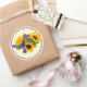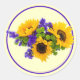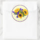 Autocollant rond avec l'image de trois tournesols jaune vif et d'une station de mer bleue sur jaune doux avec une bordure violette. Cette variété de statice produit de grandes grappes de fleurs bleues profondes sur une longue saison, parfait pour l'utilisation dans les arrangements de fleurs séchées et fraîches. Le tournesol (Helianthus annuus) est un plante annuel originaire des Amériques. Il possède une grande inflorescence (tête fleurie), et son nom est dérivé de la forme et de l'image de la fleur, qui est souvent utilisé pour représenter le soleil. Voir les confettis correspondants et le papier d'emballage. Consultez la collection entière Flowers & Sticker Plante dans la section CARDS, CARTES POSTALES & STICKERS.