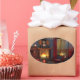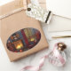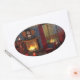Un coin lecture confortable par jour pluvieux d'automne. Autour du foyer, un feu éclatant, des fauteuils rouges moelleux, des piles de livres, des teacakes et une théière complètent le confort. À l'extérieur, un saule jaune et une haie d'érable et de hêtre rouges sont obscurcis par la pluie qui s'enflamme, qui asperge la fenêtre où un chat gingembre s'assoit en regardant dehors.