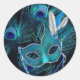 Elégant masque de plumes de paon bleu turquoise mascarade autocollants de fête. Ces beaux stickers de paon bleu turquoise sont parfaits pour tout événement.
