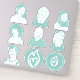 8" Feuille d'autocollants turquoise de sept caractères et deux bonbons.
