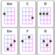 Les accords Ukulele portent des autocollants Am, C, D, Em, F et G. Utilisez ces stickers ukulele cool comme référence pour vous aider à mémoriser les accords ukulele!