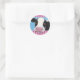 Mignons autocollants de vache à lunettes. Utilisez-les comme autocollants ou égayer le courrier de quelqu'un et utilisez-les comme scellés d'enveloppe. Le design présente une illustration fantaisiste d'une vache noire et blanche, aux yeux bruns, surplombant des rayures roses. Oeuvre © Lisa Marie Robinson. Tous droits réservés.