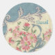 Montrez votre amour du vintage avec ces autocollants de mouchoirs à l'ancienne. Bordure bleue et fleurs roses ajoutent du charme et une douceur surannée. Personnalisez avec votre nom. Faites de grands cadeaux.