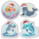 Cette adorable feuille d'autocollant présente quatre mignons animaux de l'océan, chacun portant un chapeau festif de Père Noël. Chaque animal est conçu dans un charmant style caricatural aux couleurs vives, parfait pour ajouter une touche de fantaisie et de chaleur à vos cartes de fin de année, cadeaux ou artisanat.