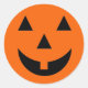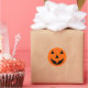 Petit autocollant rond avec une impression graphique d'une face citrouille Halloween. Customisez cet objet ou achetez tel quel.