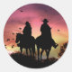 Ce sont de jolis autocollants d'un cowboy et d'une cowgirl au coucher du soleil avec un ciel étonnant ! Un grand autocollant à thème occidental pays. Ils sont tous deux à cheval, une image romantique cool.