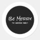 Stickers Be Merry Holiday tendance et moderne avec un design de texte blanc avec les mots "Be Merry" dans un script manuscrit en gras. Ces élégants autocollants de design typographique peuvent être facilement customisés avec votre nom de famille ou autre texte. Pour plus d'options de personnalisation, cliquez sur Customiser.